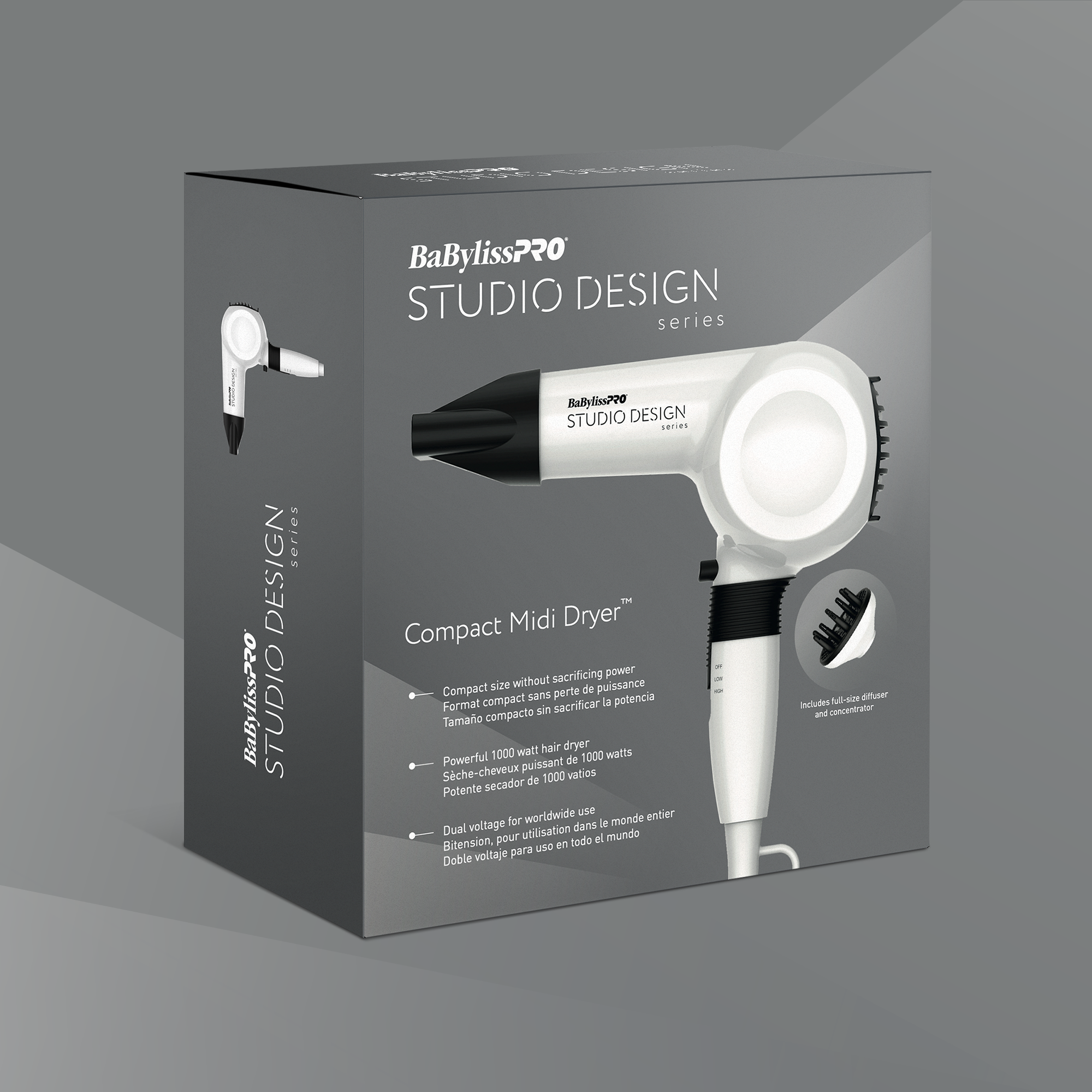 We created the Studio Design Series for BaBylissPRO, a collection of specialized tools crafted with professional stylists in mind. From the name to the box design, Studio Design Series showcases the ingenuity of the tools inside.